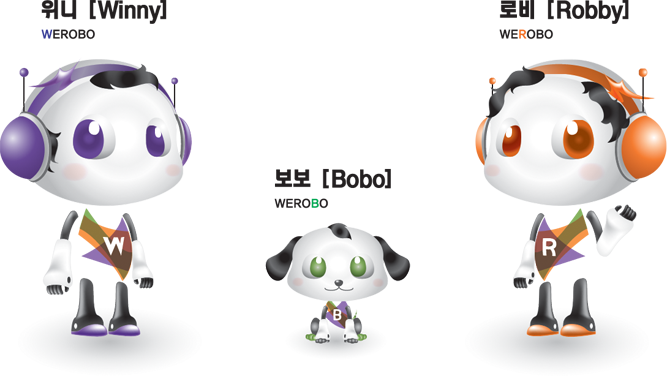 ij¸¯ÅÍÀÇ ¾ÖĪÀº °¢°¢ À§´Ï(Winny), ·Îºñ(Robby), º¸º¸(Bobo) °¢°¢ WeroboÀÇ Ã¶ÀÚ¸¦ ³ª´²¼ ¾²¿´À¸¸ç, °¡½¿¿¡ öÀÚ¸¦ »õ°Ü³Ö¾ú´Ù.